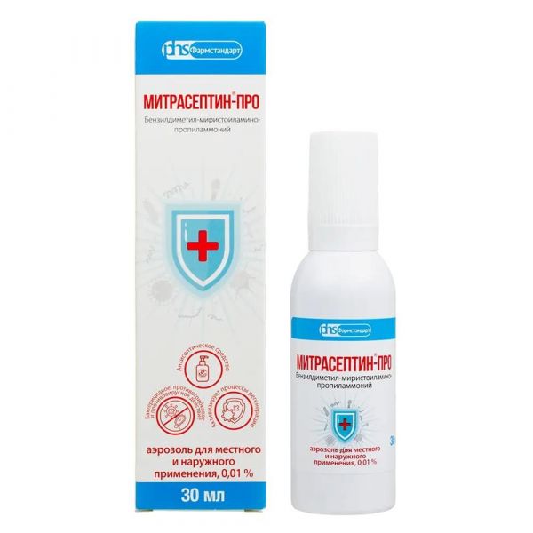 Митрасептин-про 0,01% 30мл аэр.д/пр.местн.,наружн. №1 бал. по цене от 331.19 руб в Екатеринбурге, купить Митрасептин-про 0,01% 30мл аэр.д/пр.местн.,наружн. №1 бал. (Фармстандарт-лексредства оао [курск]_2) в аптеке Фармленд, инструкция по применению, отзывы