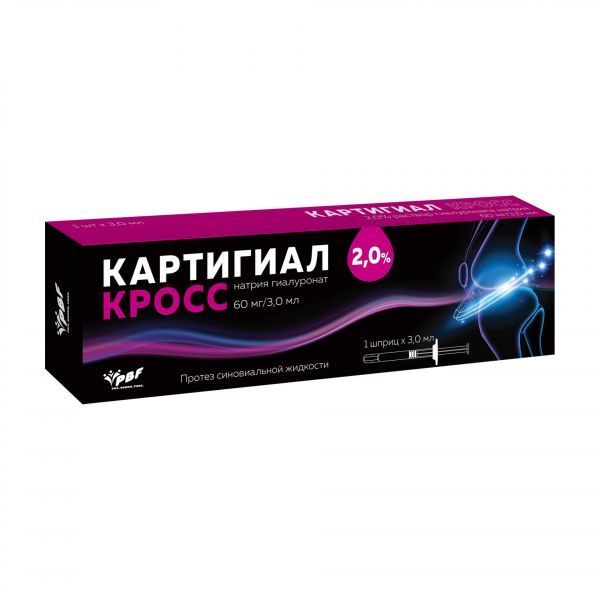 Картигиал Кросс, протез синовиальной жидкости 2%, объем 3,0 мл (1 шт./уп). (Далее по тексту – «изделие», «Картигиал Кросс» «Протез синовиальной жидкости», «медицинское изделие»).