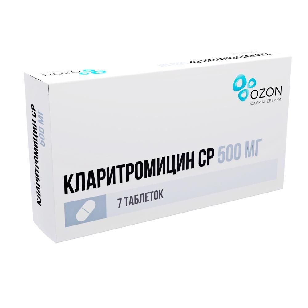 Кларитромицин ср 500мг таб.п/об. №7 по цене от 402.28 руб в Екатеринбурге, купить Кларитромицин ср 500мг таб.п/об. №7 (Озон ооо_2) в аптеке Фармленд, инструкция по применению, отзывы