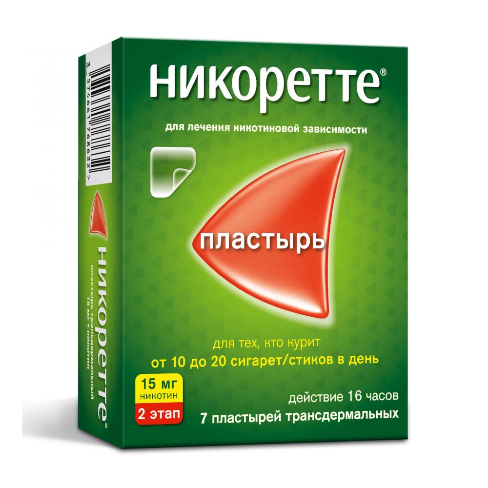 Никоретте 15мг/16ч пластырь т/дерм. №7 саше полупрозр. 2 этап по цене от 1758.00 руб в Екатеринбурге, купить Никоретте 15мг/16ч пластырь т/дерм. №7 саше полупрозр. 2 этап (Lts lohmann therapie-systeme,ag) в аптеке Фармленд, инструкция по применению, отзывы