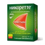 Применение препарата Никоретте® сопровождается меньшим риском, чем курение., Пластырь трансдермальный Никоретте® следует удалять перед проведением МРТ (магнитно-резонансная томография) во избежание получения ожогов., Опасность для маленьких детей, Дозы никотина, которые легко переносят взрослые курильщики и курильщики-подростки, могут вызвать тяжелую интоксикацию у детей, что может привести к смерти. Важно не оставлять без присмотра препараты, содержащие никотин, поскольку это может повлечь неправильное их применение и проглатывание детьми (см. раздел «Передозировка»)., Формирование зависимости, Может развиться зависимость от препарата, но она является менее опасной для здоровья и более легко преодолимой, чем зависимость от курения., Отказ от курения, Полициклические ароматические углеводороды, содержащиеся в табачном дыме, индуцируют метаболизм препаратов, метаболизируемых изоферментом CYP1A2 (и, возможно, CYP1A1). Прекращение курения может вызывать замедление метаболизма и, как следствие, увеличение концентрации этих препаратов в крови. Это имеет потенциальное клиническое значение для препаратов с узким терапевтическим индексом, например, теофиллина, такрина, клозапина и ропинирола. , После прекращения курения в плазме могут также увеличиться концентрации других препаратов, которые частично метаболизируются изоферментом CYP1A2, таких как имипрамин, оланзапин, кломипрамин и флувоксамин, хотя данные, подтверждающие эту гипотезу, отсутствуют, и возможное клиническое значение подобного эффекта не известно. , Ограниченные данные свидетельствуют о том, что курение может индуцировать метаболизм флекаинида и пентазоцина., После использования пластырь следует сложить клейкой стороной внутрь и утилизировать в недоступном для детей месте., Предупреждения и меры предосторожности при комбинированной терапии пластыря трансдермального Никоретте® с резинками жевательными/таблетками подъязычными/спреем для местного применения аналогичны предупреждениям и мерам предосторожности при применении каждого из препаратов по отдельности., Если лекарственное средство пришло в негодность или истек срок годности – не выбрасывайте его в сточные воды или на улицу! Поместите лекарственное средство в пакет и положите в мусорный контейнер. Эти меры помогут защитить окружающую среду!