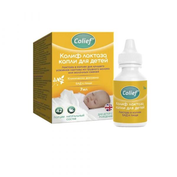 Эффективность и безопасность — единственная в России лактаза с клинически доказанными безопасностью и эффективностью. Исследования в центре для недоношенных детей (Cork University Hospital) в Ирландии показали до 40% сокращение продолжительности плача и снижение уровня выдыхаемого водорода у детей, которым препарат добавляли в грудное молоко за некоторое время до кормления (2). Вздутие живота при применении препарата сразу снижалось в 1 день на 50%, на 7 день – на 81%, на 14 день – на 97,4% (4)., Быстрый эффект - наступает в течение 2-3 дней., Удобен в применении — не надо ждать, при грудном вскармливании после добавления препарата в молоко можно сразу кормить грудью. В отличии от порошков, где нужно разламывать капсулу и ожидать ферментирования молока, мама и малыш прерывают сон только для кормления., Только натуральные ингредиенты — в одной дозе (4 капли) 810 ед. фермента лактазы, глицерин и вода. Не содержит красителей, консервантов, вкусовых добавок, лактозы, глютена, сои, молочного белка, морепродуктов, яичного белка, ГМО., №1 в Великобритании – более 25-лет применения по всему миру., Высший уровень качества — производство по стандарту GMP в Великобритании по заказу Crosscare Ltd. (Ирландия). Удостоен награды Независимого Сообщества Фармацевтов (Великобритания) в номинации Аптечный продукт 2022 года., Kearney PJ et al. J Hum Nutr Diet 1998;11:281-5, Kanabar D et al. J Hum Nutr Diet 2001;14:359-63, CHEN Yuanyuan et al. Evaluation and analysis of drug-use in hospitals of China 2022 Vol.22 No.12, ZHA Xinyi et al. J Clin Pediatr Vol.41 No.1 Jan. 2023;34-41, Колиф лактаза капли для детей - новая лактаза в каплях с натуральным составом для детей с рождения для устранения кишечных колик, вызванных лактазной недостаточностью, удобная в применении, сохраняет грудное вскармливание. Безопасность и эффективность проверена клиническими исследованиями и 25-летним опытом применения во всем мире., В течение первых месяцев жизни некоторые дети не могут полноценно усваивать лактозу, содержащуюся в молоке. Это может послужить причиной возникновения колик у детей. Колиф лактаза капли для детей расщепляет основное количество лактозы в привычном для вашего ребенка молочном питании (грудное молоко или молочная смесь) перед его кормлением, благодаря чему молоко усваивается лучше., Были проведены клинические исследования Колиф лактаза капли для детей. Первое - в центре для недоношенных детей (Cork University Hospital) в Ирландии. Оно показало прекрасный эффект у младенцев с коликами. Наблюдалось значительное сокращение продолжительности плача у детей, которым препарат добавляли в грудное молоко за некоторое время до кормления(1). Эти результаты в дальнейшем были подтверждены более крупным исследованием в нескольких клиниках Великобритании и Ирландии (2). Более поздние исследования подтвердили значительное снижение вздутия живота при применении препарата (3,4)., Преимущества, проверенные временем: