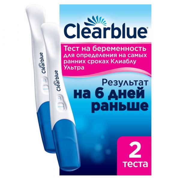 Раннее тестирование: результаты за 6 дней до дня задержки месячных (5 дней до ожидаемого начала менструации). Никакой другой бренд не является более точным: у Clearblue точность свыше 99 % со дня ожидаемого начала менструации. Используйте тест на беременность Clearblue Ultra (Клиаблу Ультра) для точного прочтения на ранних сроках. С помощью этого комплекта домашних тестов на беременность можно проводить тест за 6 дней до задержки месячных, то есть за 5 дней до ожидаемого начала менструации. Этот домашний тест на беременность разработан для максимальной простоты использования благодаря очень широкому окрашивающемуся наконечнику и эргономичной изогнутой ручке. У этого домашнего теста на беременность точность свыше 99 % со дня ожидаемого начала менструации, как вы и ожидаете от Clearblue.