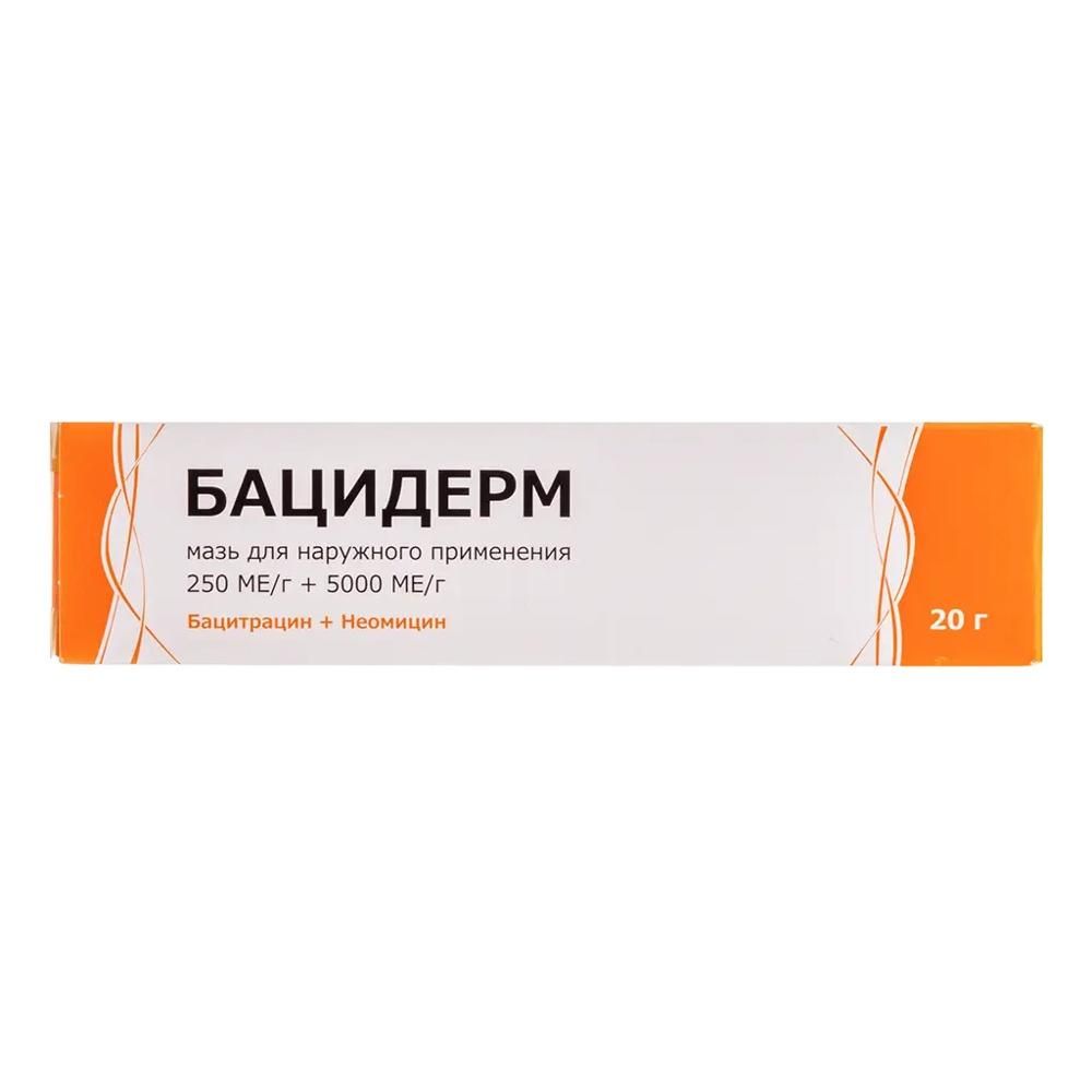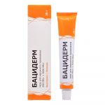 БАЦИДЕРМ является комбинированным антибактериальным препаратом, предназначенным для наружного применения. Препарат содержит два бактерицидных антибиотика: неомицин и бацитрацин. Бацитрацин является полипептидным антибиотиком, который ингибирует синтез клеточной оболочки бактерий. Неомицин является антибиотиком-аминогликозидом, который ингибирует синтез белков бактерии.