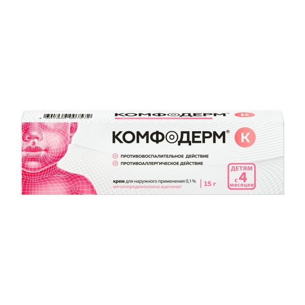 Наружно. Взрослым и детям с 4-х месячного возраста. Препарат наносят 1 раз в сутки тонким слоем на пораженные участки кожи. , Как правило, длительность непрерывного ежедневного лечения препаратом Комфодерм® К не должна превышать 12 недель для взрослых и 4 недель для детей. , Препарат Комфодерм® К подходит для лечения подострых и острых воспалительных процессов без выраженного мокнутия, при локализации процесса как на гладкой коже, так и на волосистой части головы, в том числе на коже, склонной к жирности.