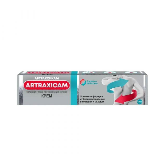 При совместном воздействии мелоксикам и капсаицин оказывают больший эффект за счет синергизма по сравнению с индивидуальным эффектом каждого из этих компонентов. Благодаря оптимальному сочетанию компонентов Артраксикам оказывает усиленный обезболивающий и противовоспалительный эффект.