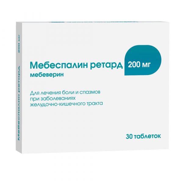 Мебеспалин ретард 200мг таб.п/об.пл.пролонг. №30 по цене от 513.70 руб в Екатеринбурге, купить Мебеспалин ретард 200мг таб.п/об.пл.пролонг. №30 (Озон ооо_2) в аптеке Фармленд, инструкция по применению, отзывы