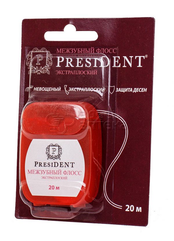 Купить PresiDent (Президент) зубная нить 20м экстра плоская 108 можно в аптеках Екатеринбурга, забронировать на сайте и в приложении