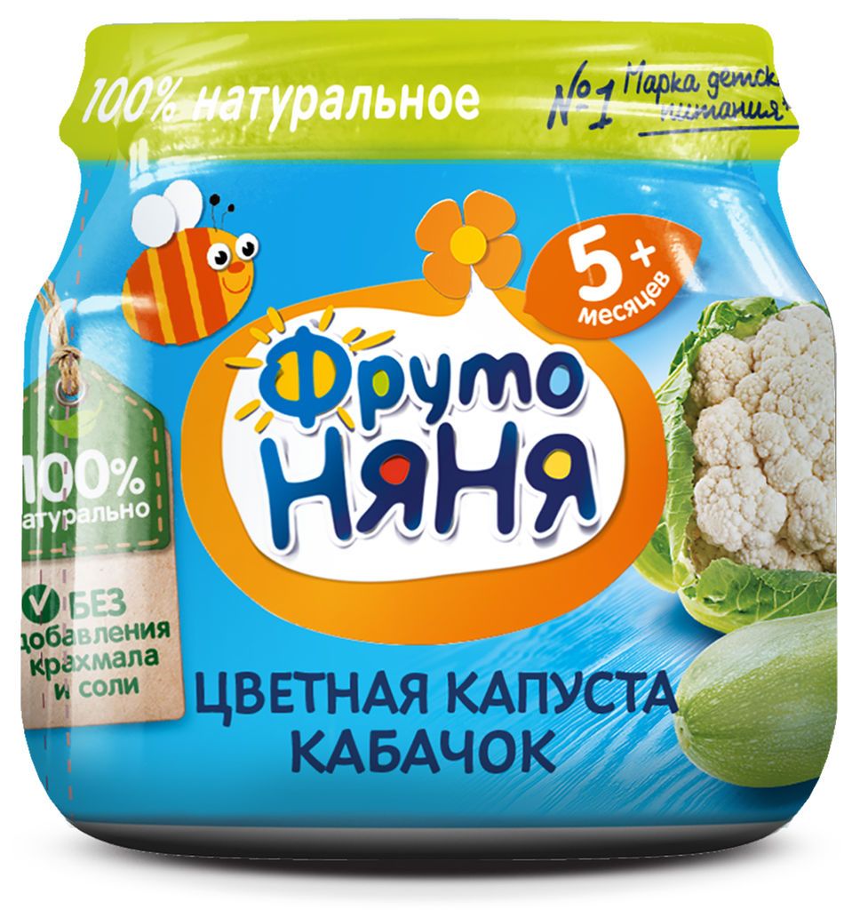 Пюре «Фрутоняня» из цветной капусты и кабачков предназначено для питания детей в возрасте от 5 месяцев.