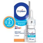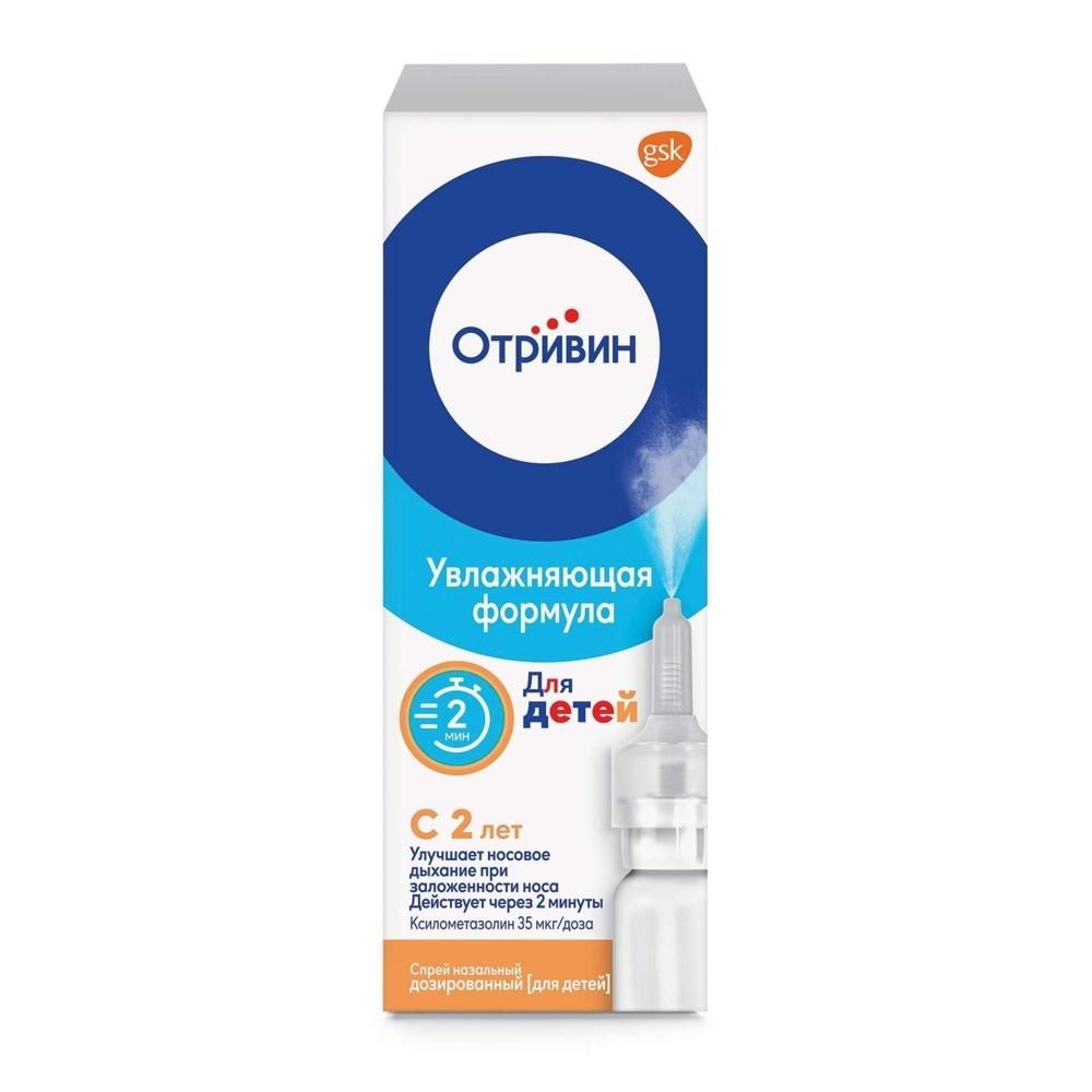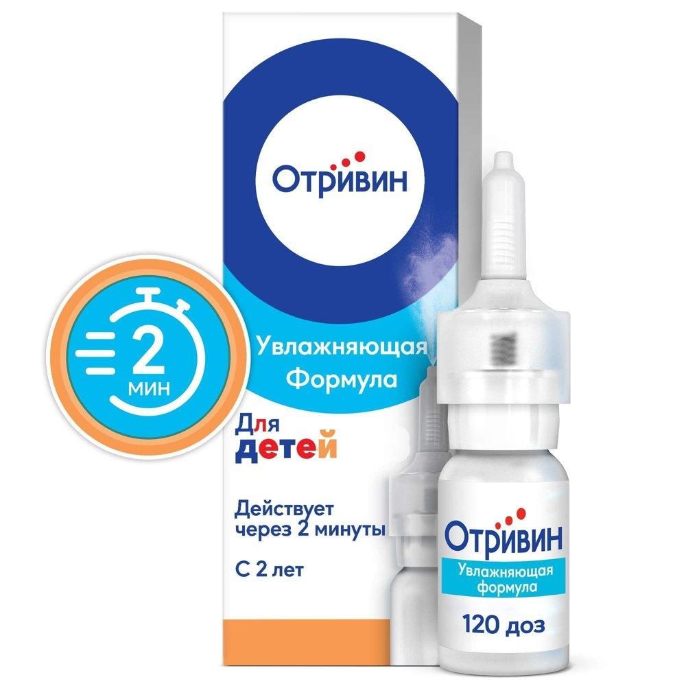 Отривин спрей назальный дозированный для детей 0,05 %., Увлажняющая формула позволяет уменьшать симптомы раздражения и сухости слизистой оболочки носа. Может применяться у детей старше 2 лет., Снимает заложенность через 2 минуты, сохраняя эффект до 12 часов*., *Инструкция для медицинского применения , РУ № П N011649/03 от 28.12.09
