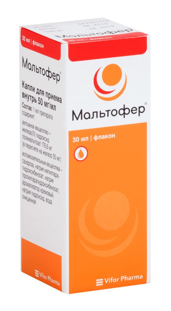 Мальтофер 50мг/мл 30мл капли д/пр.внутр. №1 фл.-кап. по цене от 275.57 руб в Екатеринбурге, купить Мальтофер 50мг/мл 30мл капли д/пр.внутр. №1 фл.-кап. (Vifor s.a.) в аптеке Фармленд, инструкция по применению, отзывы