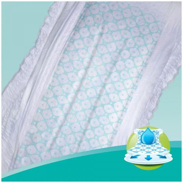 Новые подгузники Pampers New Baby-Dry с воздушными каналами дарят больше сухости* коже вашего малыша. Родители понимают, насколько важно, чтобы кожа малыша «дышала». Именно поэтому они стараются не надевать подгузник на малыша в течение дня. Подгузники Pampers помогают коже вашего малыша оставаться сухой и дышать ночью, обеспечивая ей воздушную сухость., Подгузники Pampers New Baby-Dry с воздушными каналами, позволяющими воздуху циркулировать внутри подгузника., Подгузники Pampers New Baby-Dry с уникальными Воздушными каналами, обеспечивающими воздушную сухость всю ночь, Дополнительный слой помогает равномерно распределять влагу внутри подгузника, Внутренний впитывающий слой с жемчужными микрогранулами впитывает влагу и надежно удерживает ее внутри, Тянущиеся боковые застежки обеспечивают комфортную посадку, отлично защищая от протеканий ночью, Мягкий как хлопок верхний слой, прилегающий к коже малыша (не содержит хлопка), Забавные рисунки на внешней стороне подгузника помогут сделать процесс смены подгузника легким и веселым — как для малыша, так и для мамы, Индикатор влаги сообщит вам, когда нужно поменять подгузник, (*по сравнению с подгузниками экономичного сегмента).
