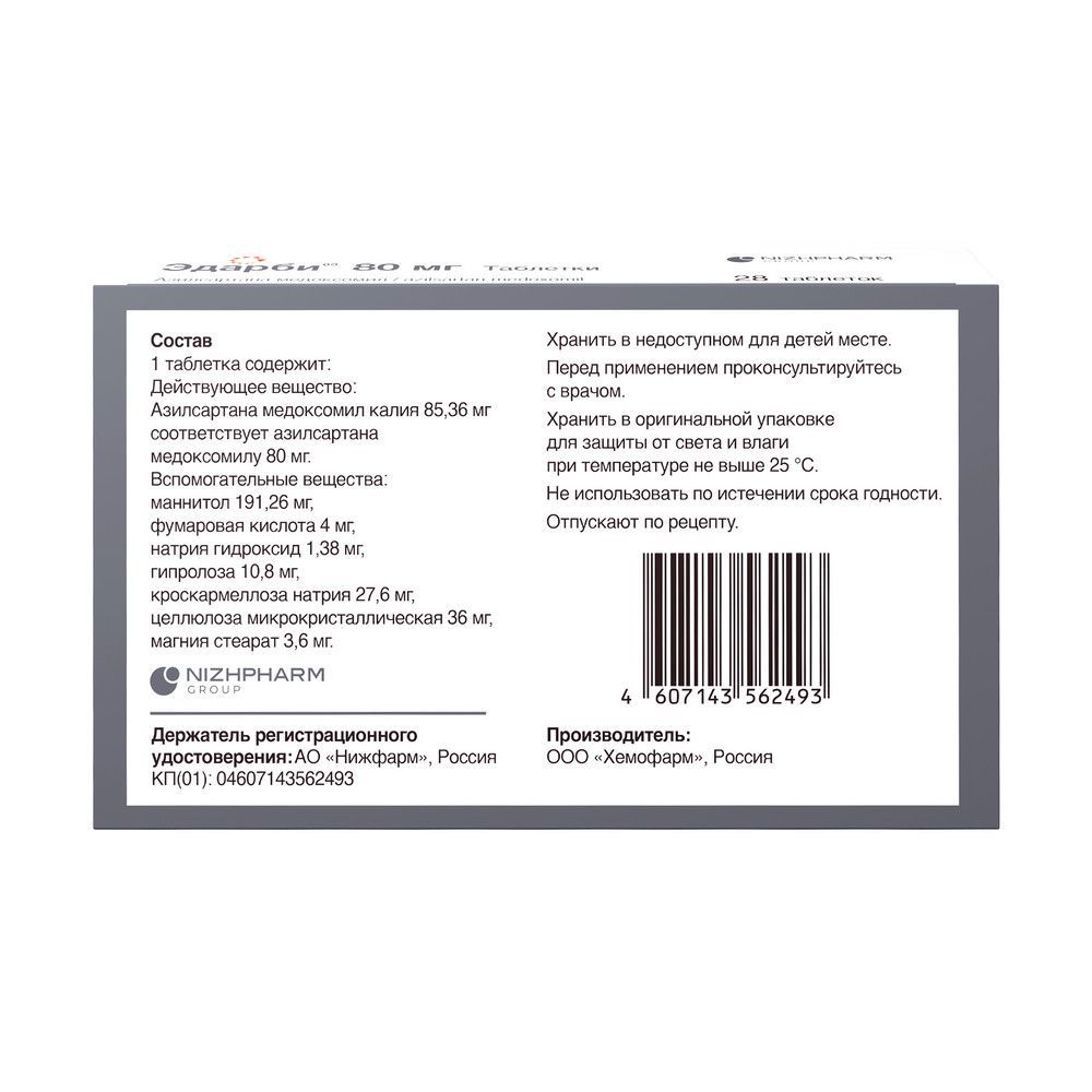Эдарби 80мг таб. №28 по цене от 1432.57 руб в Екатеринбурге, купить Эдарби 80мг таб. №28 (Хемофарм ооо) в аптеке Фармленд, инструкция по применению, отзывы
