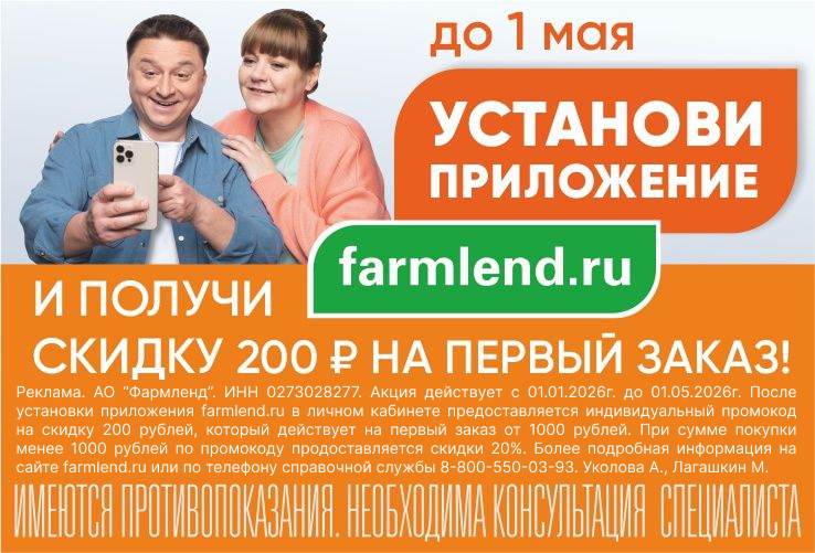 До 1 мая установите приложение «farmlend.ru» и получите скидку 200 рублей на первый заказ!