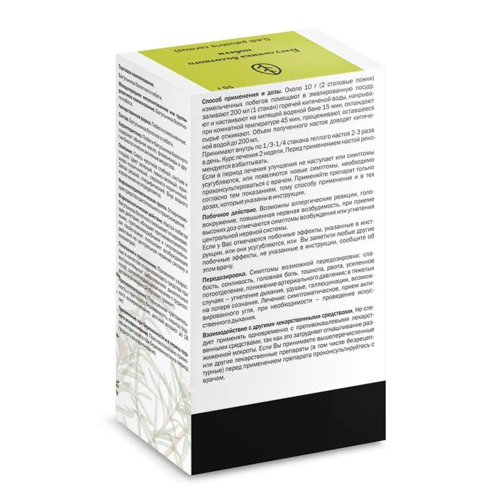Багульника болотного побеги 50г №1 пач. (Здоровье фирма ооо) - цены в Екатеринбурге, купить Багульника болотного побеги 50г №1 пач. в аптеке Фармленд, инструкция по применению, отзывы