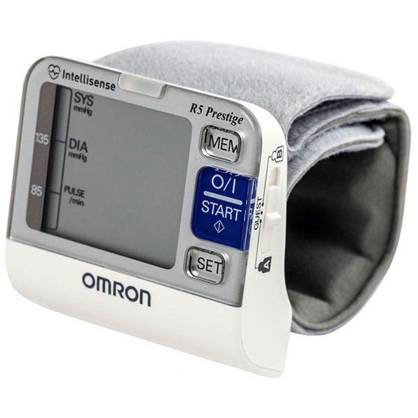 Тонометр на запястье Omron R5 Prestige (или Омрон Р5 Престиж) - это многофункциональный автоматический измеритель артериального давления и частоты пульса, которой является премиальной моделью в линейке тонометров на запястье Omron.