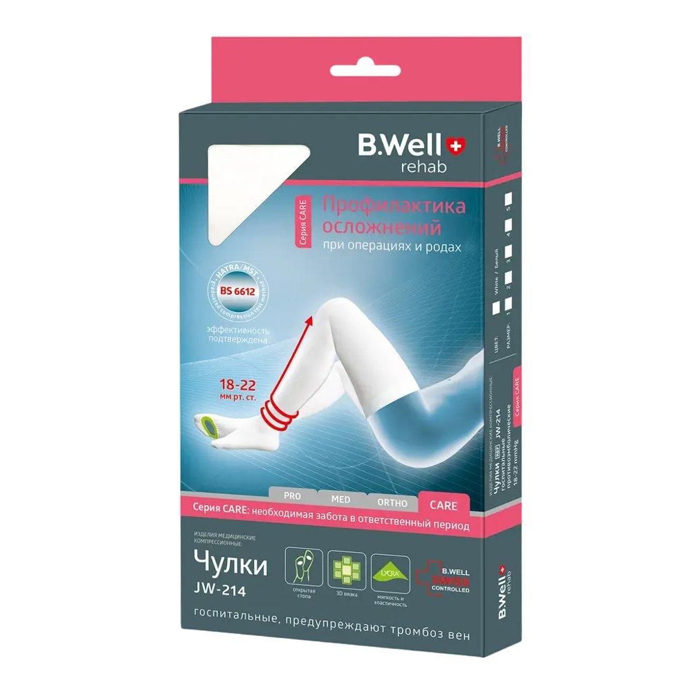 Чулки компрессионные госпитальные (противоэмболические) B.Well rehab JW-214, I класс компрессии 18-21 мм рт. ст. предназначены для профилактики венозных тромбозов и венозных тромбоэмболических осложнений (ВТЭО) в условиях стационара., - Обеспечивают профилактику тромбообразования при беременности и послеродовый период;, - Способствуют усилению оттока венозной крови, препятствуют образованию тромбов;, - Помогают избежать осложнений после операции и родов - тромбоэмболии легочной артерии (ТЭЛА);, - Эффективно снижают риск развития тромбоза глубоких вен (за счет распределенной компрессии);, - Обеспечивают необходимую циркуляцию крови у лежачих больных;, - Выдавливают лимфодренаж и межтканевую жидкость, уменьшая образование отеков.