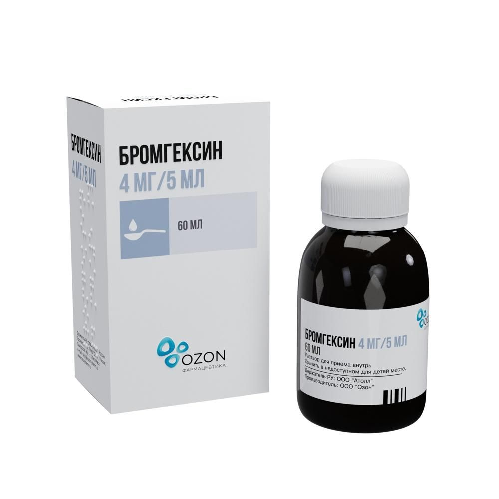 Бромгексин 4мг/ 5мл 60мл р-р д/пр.внутр. №1 фл. Озон ооо в Екатеринбурге
