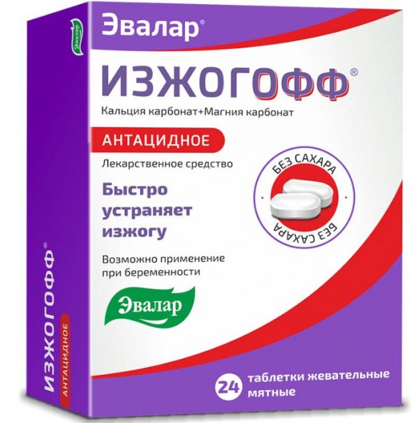 Перед применением Изжогoфф таб.жев. №24 мятные рекомендуется изучить инструкцию.