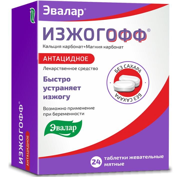 Применение препарата Изжогофф от «Эвалар» позволяет быстро нейтрализовать содержащуюся в желудочном соке избыточную соляную кислоту, чтобы защитить слизистую желудка от повреждений1. Изжогофф – это жевательные таблетки быстрого реагирования, которые начинают действовать практически моментально.