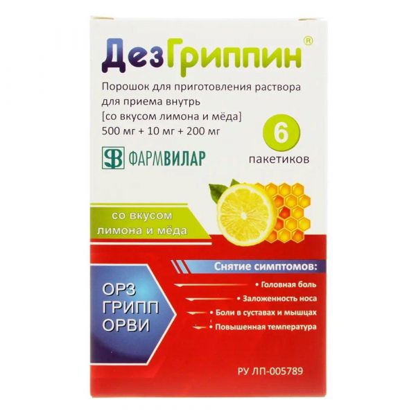 Дезгриппин пор.д/р-ра д/пр.внутр. №6 мед лимон Фармвилар нпо ооо в Екатеринбурге