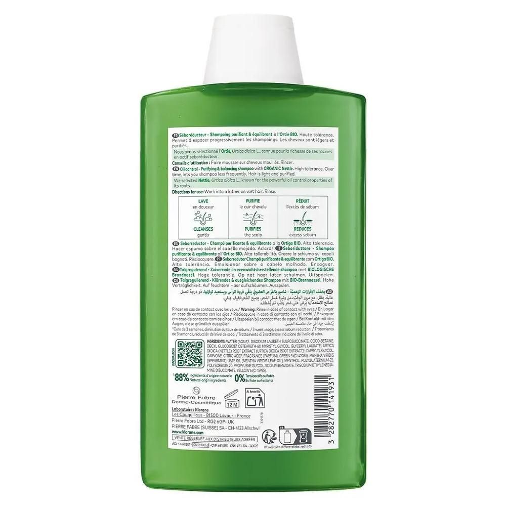 Klorane (клоран) шампунь с органическим экстрактом крапивы 400мл Pierre fabre dermo-cosmetique в Екатеринбурге