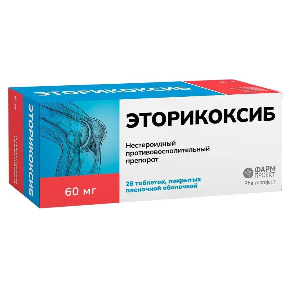 Эторикоксиб 60мг таб.п/об.пл. №28 по цене от 565.14 руб в Екатеринбурге, купить Эторикоксиб 60мг таб.п/об.пл. №28 (Фармпроект ао) в аптеке Фармленд, инструкция по применению, отзывы