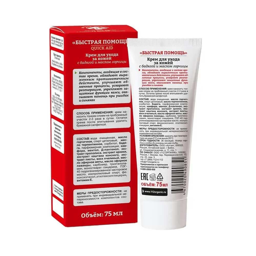 Купить Быстрая помощь крем для ухода за кожей 75мл бадяга масло горчицы можно в аптеках Екатеринбурга, забронировать на сайте и в приложении