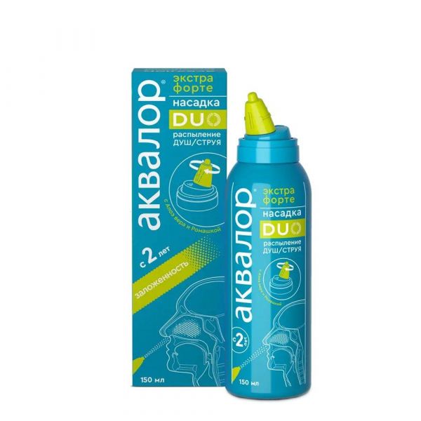 Аквалор экстра форте duo с алоэ вера и ромашкой 150мл спрей №1 бал.аэр. душ/струя по цене от 766.97 руб в Екатеринбурге, купить Аквалор экстра форте duo с алоэ вера и ромашкой 150мл спрей №1 бал.аэр. душ/струя (Нижфарм ао) в аптеке Фармленд, инструкция по применению, отзывы