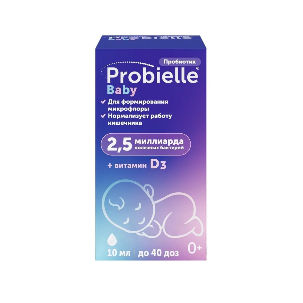 Биологически активная добавка к пище Пробиэль Бэби (далее - Probielleâ Baby) – специально разработанная комбинация полезных бактерий и витамина D3 для поддержки естественного формирования микрофлоры кишечника и иммунитета у детей с первых дней жизни., Probielleâ Baby может помочь нормализовать микрофлору кишечника и стул малыша, тем самым уменьшая риск возникновения таких неприятных ощущений, как колики и вздутие. Probielleâ Baby помогает ребенку быстрее адаптироваться к изменениям внешней среды, во время путешествий, в том числе при смене воды и еды, а также при социализации в детском саду. Probielleâ Baby помогает легче адаптироваться к введению прикорма и полному переходу малыша на детские смеси., Наблюдается недостаток солнечных дней, в связи с чем употребление витамина D3 рекомендовано в течение всего года.