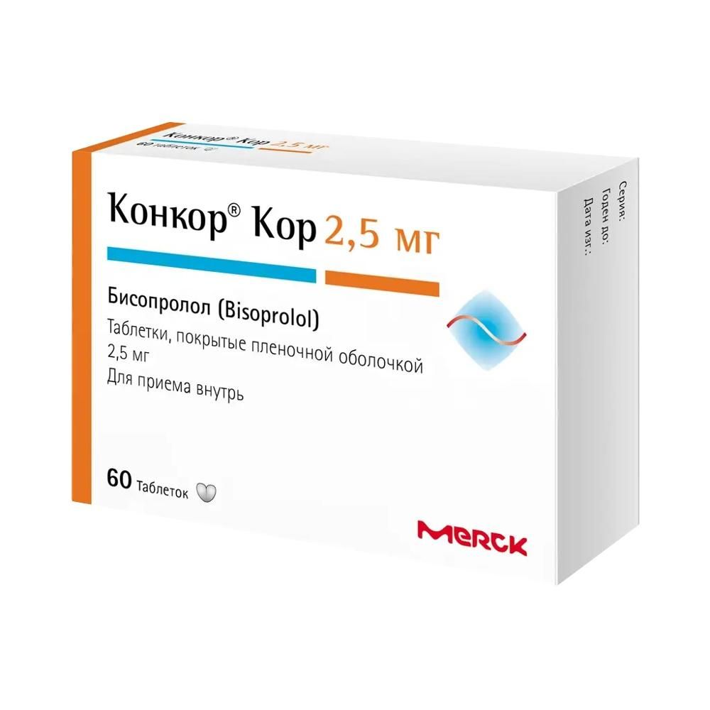 Цены на Конкор кор 2,5мг таб.п/об.пл. №60 указаны в таблице ниже
