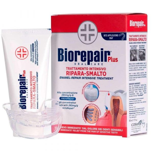 Выдавить, помогая себе одним пальцем, небольшое количество препарата на внутреннюю поверхность силиконовой капы., Поместить в рот капу и сомкнуть зубы. Оставить на 2-3 минуты, прополоскать рот водой., Следует применять данное средство один раз в день в течение 7-10 дней после чистки зубов пастой для ежедневного ухода Biorepair. Повторять лечение один раз в полгода или по необходимости.