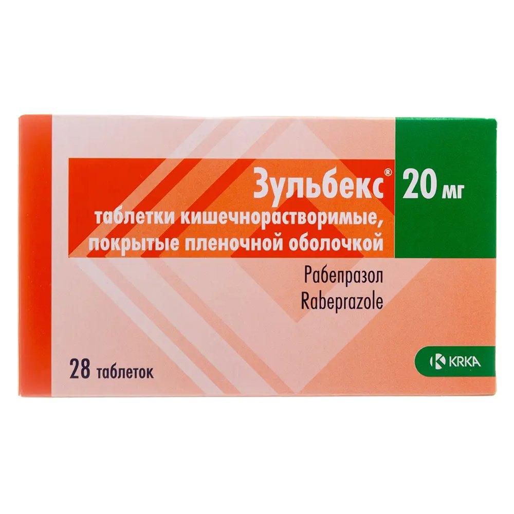 Внутрь, целиком, не разжевывая и не разламывая., Язвенная болезнь желудка и 12-перстной кишки в стадии обострения, По 20 мг 1 раз в сутки, утром., У большинства пациентов активная язва 12-перстной кишки заживает в течение четырёх недель. Однако некоторым пациентам может потребоваться ещё 4 недели для полного заживления язвы. Активная доброкачественная язва желудка у большинства пациентов заживает в течение шести недель. , Однако у небольшого количества пациентов для полного заживления может потребоваться ещё шесть недель., Гастроэзофагеальная рефлюксная болезнь (ГЭРБ): эрозивный рефлюкс-эзофагит (лечение), симптоматическое лечение ГЭРБ:, По 20 мг 1 раз в сутки на протяжении от четырёх до восьми недель. При длительной терапии может применяться поддерживающая доза препарата Зульбекс - 10-20 мг один раз в сутки, в зависимости от ответа пациента на лечение., Симптоматическое лечение ГЭРБ:, 10 мг 1 раз в сутки у пациентов без эзофагита. Если за 4 недели не удаётся добиться контроля симптомов, необходимо провести дополнительное обследование пациента. После улучшения состояния пациента дальнейший контроль симптомов можно осуществлять при приёме 10 мг 1 раз в сутки, по требованию., Синдром Золлингера-Эллисона:, Рекомендуемая стартовая доза для взрослых составляет 60 мг 1 раз в сутки. Дозу можно увеличивать до 120 мг в сутки в зависимости от индивидуальных потребностей пациента. Можно назначать суточную дозу до 100 мг 1 раз в день. Доза 120 мг может потребовать 6 кратного приёма, по 60 мг 2 раза в сутки. Терапия проводится до тех пор, пока существуют соответствующие клинические показания., Эрадикация Н. pylori у пациентов с язвенной болезнью желудка и 12-перстной кишки или хроническим гастритом:, пациенты с Н. pylor, должны пройти эрадикационную терапию. Рекомендуются следующие комбинации препаратов курсом 7 дней: ® Препарат Зульбекс по 20 мг 2 раза в сутки + кларитромицин по 500 мг 2 раза в сутки и амоксициллин 1 г 2 раза в сутки., Если схемы эрадикации требуют применения препаратов 1 раз в сутки, препарат Зульбекс необходимо принимать утром, перед завтраком; время суток и прием пищи не влияют на активность рабепразола., Нарушения функции почек и/или печени:, коррекция дозы препарата Зульбекс не требуется., Детский возраст: в связи с недостаточностью данных по эффективности и безопасности рабепразола препарат Зульбекс не применяется у детей.