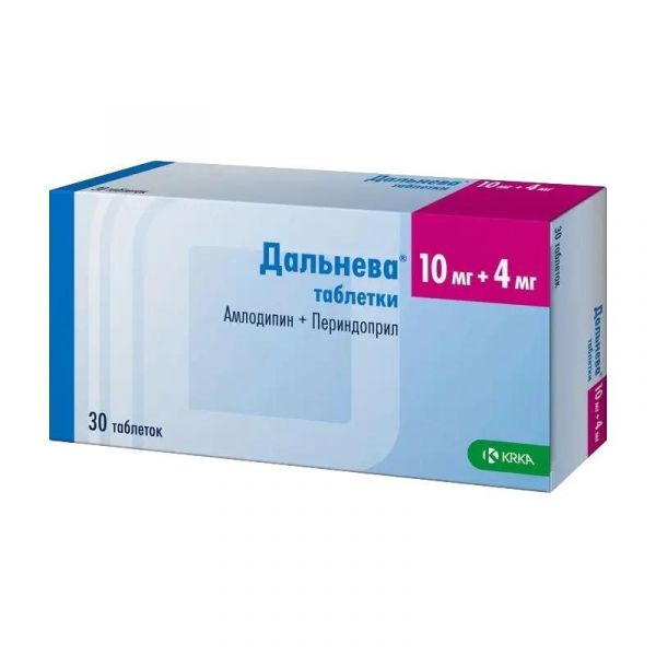 Внутрь, по одной таблетке один раз в день, предпочтительно утром перед приемом пищи. Таблетку следует глотать целиком, не разжевывая, запивая водой. Лекарственный препарат Дальнева не предназначен для начальной терапии. Доза лекарственного препарата Дальнева подбирается после ранее проведенного подбора доз отдельных компонентов препарата: периндоприла и амлодипина у пациентов с АГ и стабильной стенокардией. При терапевтической необходимости доза лекарственного препарата Дальнева может быть изменена на основании индивидуального подбора доз отдельных компонентов: амлодипин 5 мг + периндоприл 4 мг или амлодипин 10 мг + периндоприл 4 мг, или амлодипин 5 мг + периндоприл 8 мг, или амлодипин 10 мг + периндоприл 8 мг. Максимальная суточная доза: амлодипин 10 мг + периндоприл 8 мг. Особые группы пациентов Пациенты пожилого возраста и пациенты с нарушением функции почек (см. разделы "Фармакологические свойства" и "Особые указания"). Выведение периндоприлата у пациентов пожилого возраста и пациентов с почечной недостаточностью замедлено. Поэтому у таких пациентов необходимо регулярно контролировать концентрацию креатинина и калия в плазме крови. Лекарственный препарат Дальнева может быть назначен пациентам с КК равным или превышающим 60 мл/мин. Лекарственный препарат Дальнева противопоказан пациентам с КК менее 60 мл/мин (см. раздел "Противопоказания"). Пациентам с нарушением функции почек рекомендуется индивидуальный подбор доз амлодипина и периндоприла. Амлодипин, применяемый в эквивалентных дозах, одинаково хорошо переносится пациентами как пожилого возраста, так и более молодыми пациентами. Не требуется изменения режима дозирования у пациентов пожилого возраста, однако увеличение дозы следует проводить с осторожностью. Изменение концентрации амлодипина в плазме крови не коррелирует со степенью тяжести почечной недостаточности. Амлодипин не выводится из организма посредством диализа. Пациенты с нарушением функции печени (см. разделы "Фармакологические свойства" и "Особые указания") Для пациентов с легкой или умеренной печеночной недостаточностью подбор дозы необходимо проводить с осторожностью. Рекомендуется начинать прием препарата с низких доз (см. разделы "Фармакологические свойства" и "Особые указания"). Выбор оптимальной начальной и поддерживающей дозы для пациентов с печеночной недостаточностью следует проводить индивидуально, применяя препараты амлодипина и периндоприла в монотерапии. Фармакокинетика амлодипина у пациентов с тяжелой печеночной недостаточностью не изучена. Для таких пациентов прием амлодипина необходимо начать с наименьшей дозы и увеличивать ее постепенно. Дети и подростки Лекарственный препарат Дальнева не следует назначать детям и подросткам младше 18 лет, так как отсутствуют данные об эффективности и безопасности применения периндоприла и амлодипина у данных групп пациентов как в монотерапии, так и в составе комбинированной терапии.
