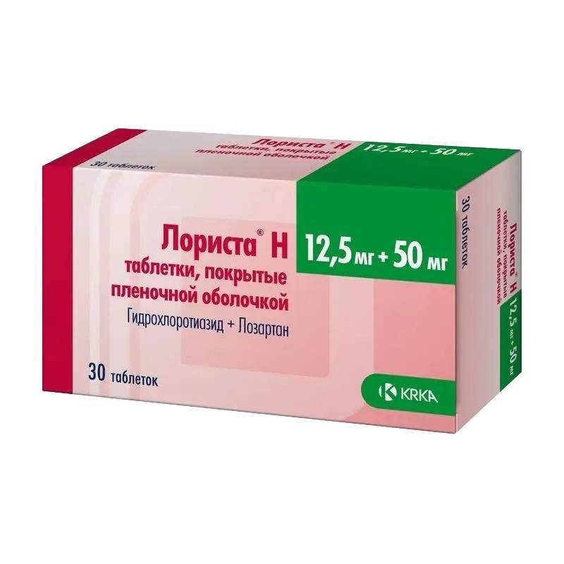 Лориста н 50мг+12,5мг таб.п/об.пл. №30 по цене от 364.00 руб в Екатеринбурге, купить Лориста н 50мг+12,5мг таб.п/об.пл. №30 (Крка-рус ооо_1) в аптеке Фармленд, инструкция по применению, отзывы