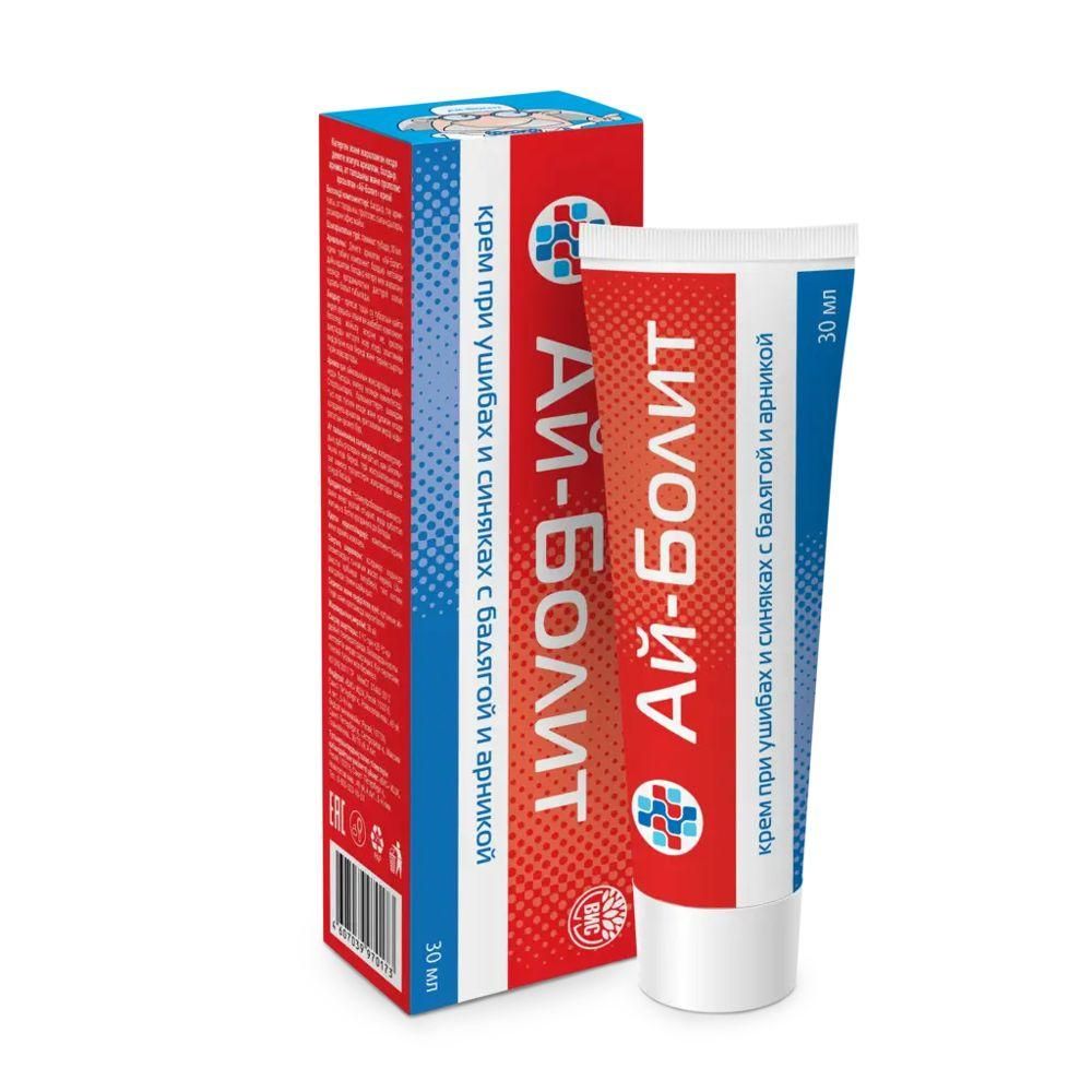 Крем «Ай-Болит» для ухода за кожей тела. Активные компоненты способствуют снятию отечности, воспаления, восстанавливают кожный барьер при синяках и ушибах.