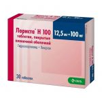 Фармакодинамика Препарат Лориста® Н 100 – комбинированный препарат, в состав которого входят лозартан и гидрохлоротиазид, которые оказывают аддитивное антигипертензивное действие, снижая артериальное давление (АД) в большей степени, чем каждый из компонентов в отдельности. Вследствие диуретического эффекта гидрохлоротиазид повышает активность ренина плазмы крови, стимулирует секрецию альдостерона, увеличивает концентрацию ангиотензина II и снижает содержание калия в плазме крови. Прием лозартана блокирует все физиологические эффекты ангиотензина II и, вследствие подавления эффектов альдостерона, может способствовать уменьшению потери калия, связанной с приемом диуретика. Лозартан обладает умеренным и преходящим урикозурическим эффектом. Гидрохлоротиазид вызывает небольшое повышение концентрации мочевой кислоты в плазме крови, комбинация лозартана и гидрохлоротиазида способствует уменьшению выраженности гиперурикемии, вызванной диуретиком. Гидрохлоротиазид Механизм действия тиазидных диуретиков (тиазидов) изучен не полностью. Тиазиды блокируют реабсорбцию ионов натрия и хлора в начале почечных канальцев. Таким образом, они увеличивают экскрецию натрия и хлора и, следовательно, выведение воды из организма. В результате мочегонного действия гидрохлоротиазида уменьшается объем циркулирующей крови (ОЦК), вследствие чего увеличивается активность ренина и содержание альдостерона в плазме крови. Это приводит к увеличению экскреции ионов калия почками и снижению содержания калия в плазме крови (гипокалиемии). Гидрохлоротиазид также увеличивает экскрецию ионов магния и снижает экскрецию ионов кальция почками. Тиазидные диуретики снижают экскрецию мочевой кислоты почками и увеличивают ее концентрацию в плазме крови. Тиазидные диуретики также уменьшают активность карбоангидразы путем усиления выведения ионов бикарбоната. Но это действие обычно проявляется слабо и не влияет на pH мочи. В максимальных терапевтических дозах диуретический/натрийуретический эффект всех тиазидных диуретиков приблизительно одинаков. Натрийурез и диурез наступают в течение 2 часов и достигают своего максимума примерно через 4 часа. Продолжительность диуретического действия гидрохлоротиазида составляет от 6 до 12 часов. Гидрохлоротиазид обладает антигипертензивным действием. На нормальное АД тиазидные диуретики влияния не оказывают. Лозартан Лозартан является селективным антагонистом рецепторов ангиотензина II (АРА II) (тип АТ1) для приема внутрь. В условиях in vivo и in vitro лозартан и его фармакологически активный метаболит Е-3174 блокируют все физиологически значимые эффекты ангиотензина II на АТ1-рецепторы независимо от пути его синтеза: приводит к повышению активности ренина плазмы крови, снижает концентрацию альдостерона в плазме крови. Лозартан косвенно вызывает активацию АТ2-рецепторов за счет повышения концентрации ангиотензина II в плазме крови. Не подавляет активность кининазы II, фермента, который участвует в метаболизме брадикинина. Снижает общее периферическое сосудистое сопротивление (ОПСС), давление в «малом» круге кровообращения, уменьшает постнагрузку на миокард, оказывает диуретический эффект. Препятствует развитию гипертрофии миокарда, повышает толерантность к физической нагрузке у пациентов с хроническо