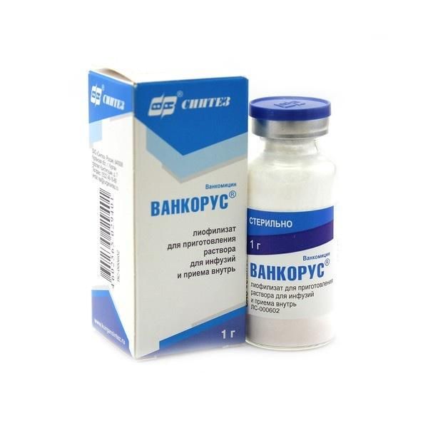 Ванкорус (ванкомицин) 1000мг лиоф.д/р-ра д/инф. д/пр.внутр. №1 фл. (Синтез пао) - цены в Екатеринбурге, купить Ванкорус (ванкомицин) 1000мг лиоф.д/р-ра д/инф. д/пр.внутр. №1 фл. в аптеке Фармленд, инструкция по применению, отзывы
