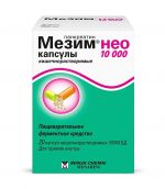 Фармакодинамика Ферментный препарат, улучшающий процессы переваривания пищи у взрослых и детей, и тем самым значительно уменьшающий симптомы ферментной недостаточности поджелудочной железы, включая боль в области живота, метеоризм, изменение частоты и консистенции стула. Панкреатические ферменты, входящие в состав препарата, облегчают переваривание белков, жиров, углеводов, что приводит к их полному всасыванию в тонкой кишке. Препарат Мезим® нео 10000 содержит свиной панкреатин в форме мини-таблеток, покрытых кишечнорастворимой (кислотоустойчивой) оболочкой, в желатиновых капсулах. Капсулы быстро растворяются в желудке, высвобождая мини-таблетки. Данный принцип разработан с целью тщательного перемешивания мини-таблеток с химусом, одновременного поступления мини-таблеток с химусом из желудка в кишечник, и, в конечном счете, лучшего распределения ферментов после их высвобождения внутри содержимого кишечника. Когда мини-таблетки достигают тонкой кишки, кишечнорастворимая оболочка быстро разрушается (при рН > 5,5), происходит высвобождение ферментов с липолитической, амилолитической и протеолитической активностью, что приводит к расщеплению жиров, углеводов и белков. Полученные в результате расщепления вещества затем либо всасываются напрямую, либо подвергаются дальнейшему расщеплению кишечными ферментами. Фармакокинетика В исследованиях на животных было продемонстрировано отсутствие всасывания нерасщепленных ферментов, вследствие чего классические фармакокинетические исследования не проводились. Препаратам, содержащим ферменты поджелудочной железы, не требуется всасывания для проявления своих эффектов. Наоборот, терапевтическая активность указанных препаратов в полной мере реализуется в просвете желудочно-кишечного тракта. По своей химической структуре они являются белками и, в связи с этим, при прохождении через желудочно-кишечный тракт ферментные препараты расщепляются до тех пор, пока не произойдет всасывание в виде пептидов и аминокислот.