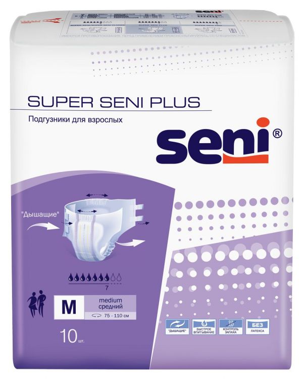 Купить Seni (Сени) подгузники super medium air plus №10 75-110 см можно в аптеках Екатеринбурга, забронировать на сайте и в приложении
