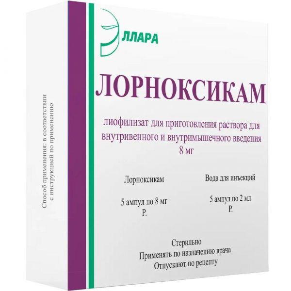 Режим дозирования, Рекомендуемая однократная доза – 8 мг внутривенно или внутримышечно. Суточная доза не должна превышать 16 мг. Некоторым пациентам может потребоваться введение дополнительной дозы 8 мг в течение первых 24 часов., Препарат следует применять в минимально эффективной дозе. Продолжительность курса лечения должна быть максимально короткой. Риск возникновения нежелательных явлений может быть значительно уменьшен, если применять препарат в наименьшей эффективной дозе в течение наиболее короткого периода, необходимого для облегчения симптомов., Особые группы пациентов, Пациенты пожилого возраста, Специально подбирать дозу пожилым пациентам не требуется, если нет нарушения функции почек или печени. Препарат следует назначать с осторожностью, поскольку в этой возрастной группе нежелательные явления со стороны ЖКТ переносятся хуже., Пациенты с нарушением функции почек, Пациентам с легким или умеренным нарушением функции почек может потребоваться коррекция дозы. ЛОРНОКСИКАМ противопоказан пациентам с, тяжелой почечной недостаточностью., Пациенты с нарушением функции печени, Пациентам с умеренным нарушением функции печени может потребоваться коррекция дозы. ЛОРНОКСИКАМ противопоказан пациентам с тяжелой печеночной недостаточностью. , Способ применения , Внутривенно, внутримышечно., Внутримышечные инъекции делают длинной иглой., Раствор для внутривенного и внутримышечного введения готовят непосредственно перед применением путем растворения содержимого одной ампулы (8 мг лорноксикама) водой для инъекций (2 мл)., Приготовленный таким образом раствор вводят внутривенно или внутримышечно при послеоперационных болях и внутримышечно при остром приступе люмбаго/ишиалгии., Длительность внутривенного введения раствора должна составлять не менее 15 секунд, внутримышечного – не менее 5 секунд.