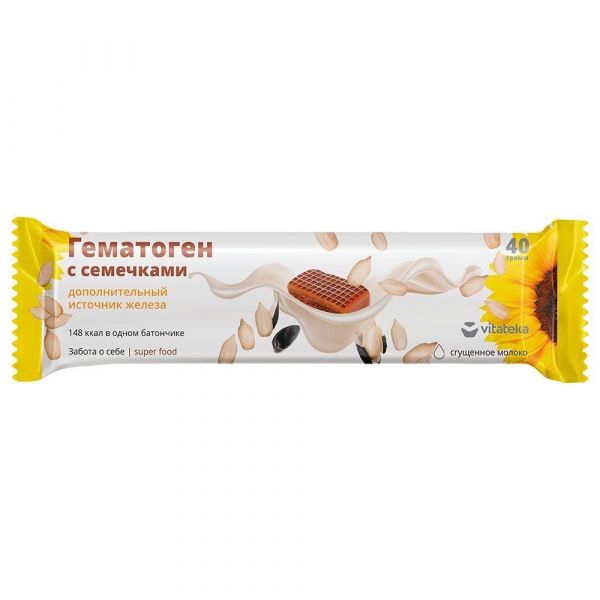 Купить VITATEKA (Витатека) гематоген 40г семечки можно в аптеках Екатеринбурга, забронировать на сайте и в приложении