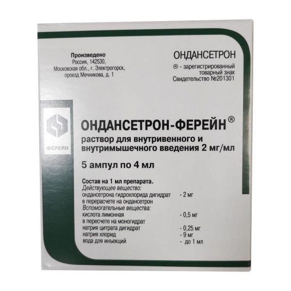Купить Ондансетрон 2мг/мл 4мл р-р д/ин.в/в. в/м. №5 амп. можно в аптеках Екатеринбурга, забронировать на сайте и в приложении