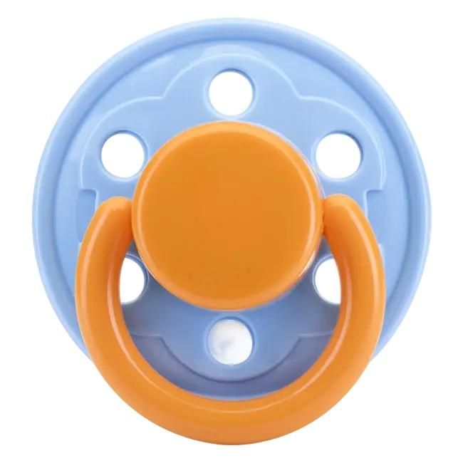 Латексная пустышка «Курносики»® ортодонтической формы разработана с учетом возраста и физиологических особенностей новорожденных., Пустышка изготовлена из полипропилена – безопасного пластика, который не содержит бисфенол А., Баллончик пустышки изготовлен из латекса – природного, натурального материала. Ортодонтическая форма пустышки имитирует форму соска материнской груди в момент кормления. Большие отверстия нагубника обеспечивают свободную циркуляцию воздуха во время сосания и помогают предотвратить намокание и воспаление кожи вокруг рта., Пустышку разрешено стерилизовать различными способами.