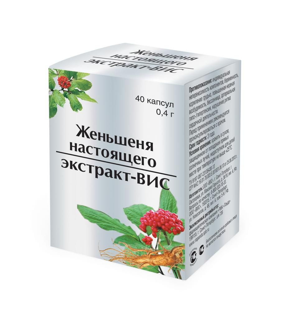 Женьшеня настоящего эктракт 400мг капс. №40 (Вис ооо) - цены в Екатеринбурге, купить Женьшеня настоящего эктракт 400мг капс. №40 в аптеке Фармленд, инструкция по применению, отзывы