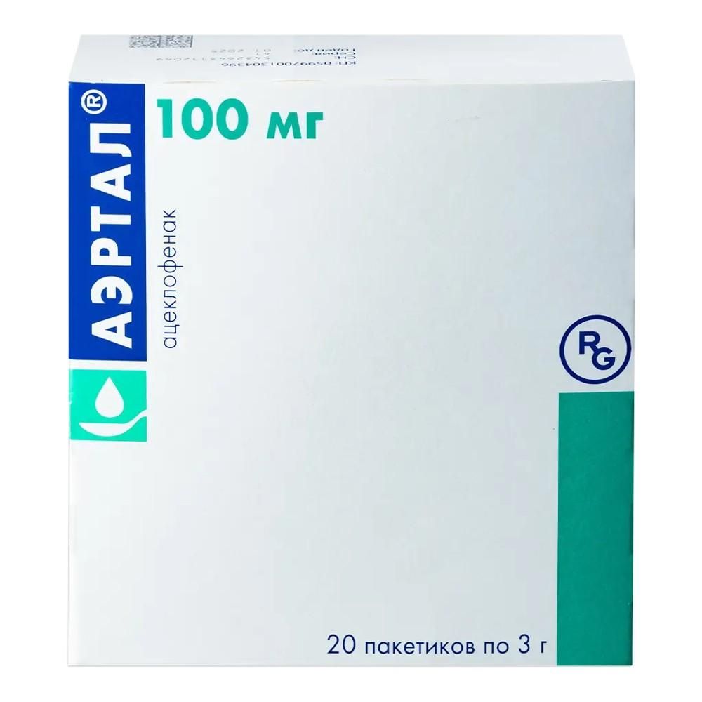 Содержимое пакетиков следует растворять в 40-60 мл воды и принимать немедленно. Одновременный прием пиши замедляет скорость абсорбции действующего вещества, но не снижает степень абсорбции из ЖКТ., Взрослые:, Рекомендованная доза Аэртала составляет 1 пакетик 2 раза в сутки (один утром и один вечером)., Дети:, Безопасность и эффективность препарата для лечения детей и подростков не установлена., Пациенты пожилого возраста:, Обычно снижение дозы не требуется, однако следует учитывать меры предосторожности, приведенные в разделе «Особые указания»., Печеночная недостаточность:, При лечении пациентов с нарушениями функции печени легкой и средней степени тяжести следует применять более низкие дозы ацеклофенака. Рекомендованная начальная доза составляет 100 мг в сутки., Почечная недостаточность:, Доказательства необходимости изменения дозы ацеклофенака при лечении пациентов с нарушением функции почек легкой и средней степени тяжести отсутствуют, однако рекомендуется соблюдать осторожность., Нежелательные явления могут быть минимизированы, если сократить длительность лечения до минимально необходимой для достижения контроля симптомов заболевания.