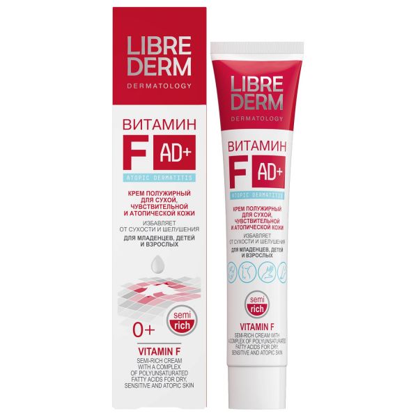 Сухая, очень сухая и атопичная кожа характеризуется ослабленным барьером, крем для лица увлажняющий LIBREDERM Витамин F полужирный - идеальное решение для тех, у кого сухая, чувствительная и атопичная кожа. Формула не только увлажняет и смягчает кожу, но и эффективно борется с проблемами кожи, избавляя от шелушения, зуда и покраснений. Активные ингредиенты крема, такие как витамин F, экстракт календулы и тысячелистника, обладают бактерицидным, противовоспалительным и успокаивающим действием, помогая коже вернуть здоровый вид и мягкость, повышает защитные свойства кожи к воздействию неблагоприятных факторов внешней среды. Витамин F для ухода за кожей лица, подходит, как увлажняющий крем для тела, а также, как крем для рук и крем для ног. Благодаря уникальному составу, кремом можно пользоваться от 0+, для новорожденных, для мужчин и для женщин. Легкая текстура быстро впитывается, не оставляя жирного блеска, и придает коже ощущение комфорта. Благодаря крему для сухой кожи, ваше тело станет мягким, увлажненным и здоровым уже через 2 недели применения. Уход за кожей с Витамин Ф станет незаменимым sos / сос помощником. Выберите от профессионального бренда Либридерм жирный крем и наслаждайтесь гладкой, красивой и мягкой кожей.