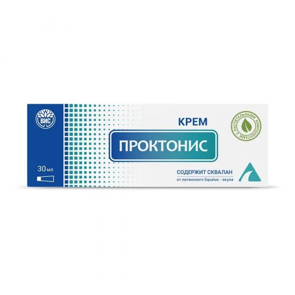 Геморрой – распространенное заболевание, которое становится причиной обращения к врачу-проктологу. Геморрой известен «неудобными» проявлениями – дискомфортом в области заднего прохода, ощущением инородного тела, анальным зудом, жжением в проекции прямой кишки и анального отверстия. При прогрессировании геморроя могут появиться анальные трещины и другие осложнения. Кожа вокруг анального отверстия (в перианальной области) тоньше, чем на других частях тела. Раздражающие факторы и несоблюдение личной гигиены часто приводят к дискомфорту или усугублению имеющихся проблем., ПРОКТОНИС крем – это косметическое средство для интимного ухода при проявлениях дискомфорта в перианальной области. Крем можно применять при зуде, жжении, дискомфорте в области ануса и предупреждения образования анальных трещин. Благодаря специально разработанной формуле активные компоненты ПРОКТОНИС крема оказывают комплексное воздействие на нежную тонкую кожу перианальной области, питая ее, препятствуя потере влаги, поддерживая эластичность кожи и предупреждая возникновение функциональных проблем., В состав ПРОКТОНИС крем входят растительные экстракты (гамамелиса, тысячелистника, алоэ вера), масло какао, сквалан. ПРОКТОНИС крем не содержит гормонов. Насадка-аппликатор в комплекте ПРОКТОНИС крема обеспечивает удобное применение и экономный расход., Описание компонентов:, Масло касторовое, получаемое из растения клещевина обыкновенная, усиливает проникновение остальных компонентов в поражённые участки ткани, оказывает смягчающий эффект., Масло какао обладает заживляющим и тонизирующим действием на кожу. , Сквалан - гидрированная форма сквалена - естественного защитного компонента кожи. Формирует на коже защитный барьер, придает коже эластичность и ускоряет её регенерацию. , Алоэ вера экстракт содержит гликопротеины и полисахариды, которые ускоряют заживление тканей и оказывают противовоспалительное действие. Ускоряет процессы регенерации, увеличивает синтез коллагена, имеет антиаллергический и бактерицидный эффект, тонизирует и увлажняет кожу., Гамамелиса вирджинского экстракт применяется как кровоостанавливающее средство. Биологически активные вещества гамамелиса способствуют снижению воспаления и облегчению болевых ощущений., Тысячелистника экстракт - обладает кровоостанавливающим, противовоспалительным, бактерицидным свойствами. , Шалфея экстракта благодаря содержанию биологически активных веществ, в том числе дубильных веществ, проявляет противовоспалительное, подсушивающее действие. Использование шалфея способствует уменьшению воспаления и ускорению заживления повреждений., Витамин Е - основной антиоксидант кожного барьера, улучшает эпителизацию, питает и смягчает, обладает противовоспалительной активностью., Бисаболол - вещество, получаемое из ромашки аптечной. Обладает антимикробным, противовоспалительным действием, успокаивает, снимает раздражение., Для комплексной поддержки изнутри и снаружи при симптомах, сопровождающих геморрой, рекомендуется совместное использование ПРОКТОНИС УЛЬТРА в капсулах и ПРОКТОНИС крем.