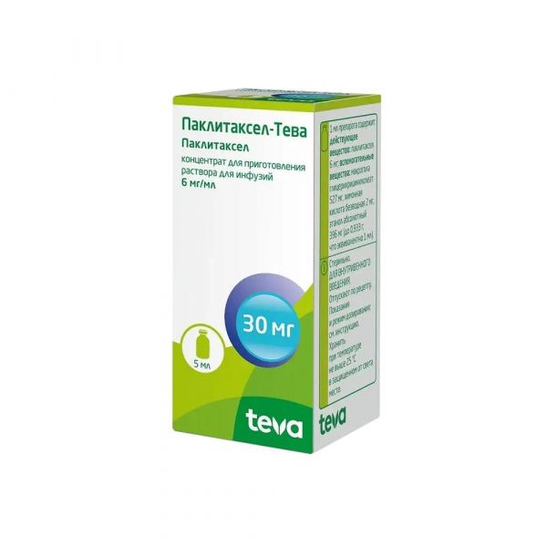 Фармакотерапевтическая группа: противоопухолевое средство, алкалоид, Код АТХ: L01CD01, Фармакологические свойства, Фармакодинамика, Паклитаксел - цитостатический противораковый препарат из группы таксанов, получаемый полусинтетическим путем., Механизм его действия связан с влиянием на процесс деления клетки за счет стимуляции сборки внутриклеточных структур - микротрубочек из димерных молекул тубулина, стабилизации их структуры, подавления деполимеризации и торможения динамической реорганизации, что нарушает клеточное деление в М-фазе клеточного цикла., Кроме того, паклитаксел индуцирует образование аномальных скоплений, или «связок», микротрубочек на протяжении клеточного цикла и вызывает образование множественных звездчатых скоплений микротрубочек во время митоза., По экспериментальным данным обладает мутагенными и эмбриотоксическими свойствами, вызывает снижение репродуктивной функции., Фармакокинетика, Концентрация паклитаксела в плазме крови после внутривенного введения уменьшается в соответствии с двухфазной кинетикой., Фармакокинетика паклитаксела определялась после инфузий препарата в дозах 135 и 175 мг/м2 на протяжении 3 и 24 часов. Период полувыведения и общий клиренс паклитаксела вариабельны и зависят от дозы и длительности введения: от 13,0-52,7 часов, от 12,2 до 23,8 л/ч/м2 соответственно., Средний объем распределения составляет от 198 до 688 л/м2., При многократных курсах лечения кумуляции паклитаксела не отмечено., Связь с белками плазмы крови составляет в среднем 89%. В исследованиях in vitro на микросомах печени выявлено, что паклитаксел метаболизируется в печени при участии изофермента CYP2C8 до 6-альфа-гидроксипаклитакела и изофермента CYP3A4 до 3-парагидроксипаклитаксела и 6-альфа, 3-парадигидроксипаклитаксела., Выведение. После внутривенной инфузии паклитаксела (15-275 мг/м2) на протяжении 1, 6 или 24 часов 1,3-12,6% введенной дозы выводилось почками в неизмененном виде. После 3-часовой инфузии меченного радиоактивной меткой паклитаксела в дозах 225-250 мг/м2 в течение 120 часов 14% радиоактивности было выведено почками, 71% - кишечником, 5% введенной радиоактивности выводилось в неизменном виде, остальную часть составляли метаболиты, главным образом, 6-альфагидроксипаклитаксел.