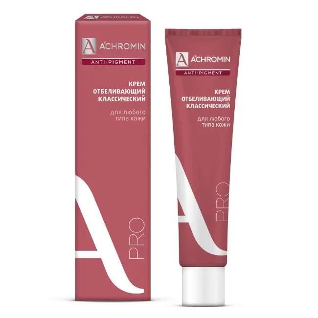 «Ахромин» предназначен для удаления и профилактики гиперпигментации — веснушек, пятен после беременности, возрастных пигментных пятен, слишком темного загара. Используется для защиты кожи от вредного воздействия солнечных лучей.
